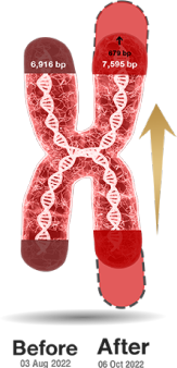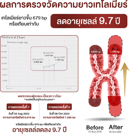 เทโลเมียร์ยาวขึ้น 679 bp หรือเทียบเท่ากับ